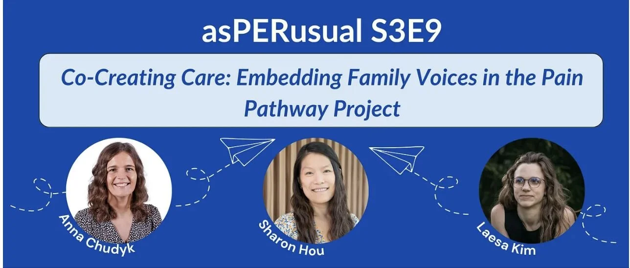 Dr. Sharon Hou and Laesa Kim spoke on an episode of the podcast asPERusual as members of CHILD-BRIGHT Pain Pathway team, speaking to the practical ways to integrate lived and living experience to shape research decisions, refine implementation strategies, and uncover gaps that traditional evidence may miss. View podcast here.